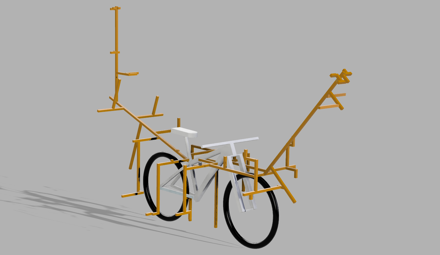 vélo entièrement conçu en bois pour présenter au mieux le recyclage.